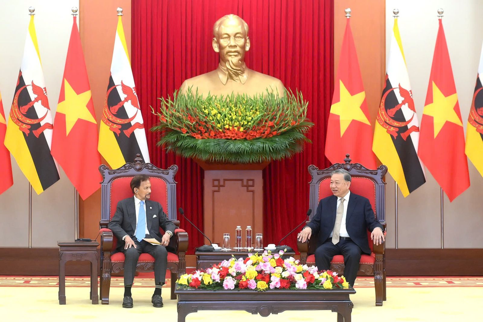 Tổng Bí thư Tô Lâm nhiệt liệt chào mừng Quốc vương Brunei trở lại thăm Việt Nam lần thứ bảy, tin tưởng chuyến thăm lần này sẽ thúc đẩy quan hệ Đối tác toàn diện Việt Nam-Brunei phát triển ngày càng thực chất và hiệu quả hơn.
