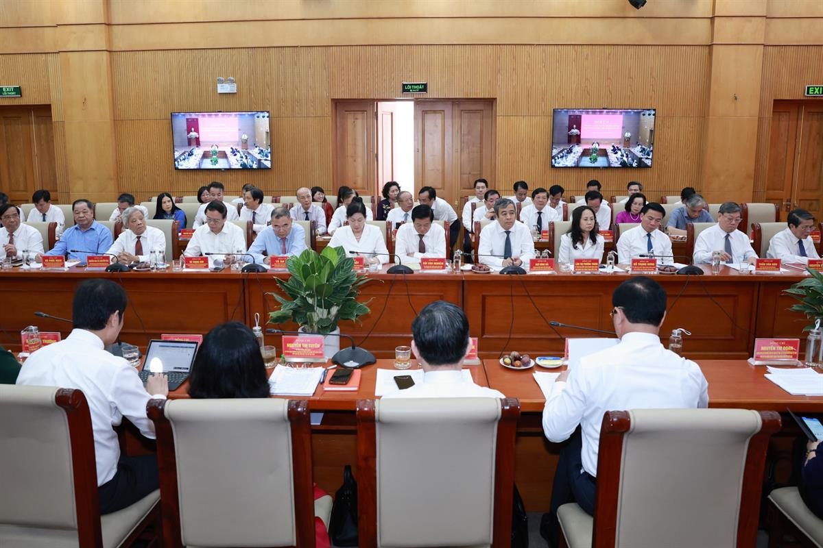 Tham dự buổi làm việc có các đồng chí Ủy viên Trung ương Đảng: Nguyễn Đức Hải, Phó Chủ tịch Quốc hội; Trần Văn Rón, Phó Chủ nhiệm Thường trực Ủy ban Kiểm tra Trung ương; Đỗ Trọng Hưng, Phó Trưởng Ban Tổ chức Trung ương; Lâm Thị Phương Thanh, Phó Chánh Văn phòng Thường trực Văn phòng Trung ương Đảng; Bùi Văn Nghiêm, Phó trưởng Ban Nội Chính Trung ương; Ngô Đông Hải, Phó Trưởng ban Tuyên giáo và Dân vận Trung ương; Lê Thị Thủy, Phó Bí thư Đảng ủy Chính phủ; Nguyễn Thị Thu Hà, Phó Bí thư Trường trực Đảng ủy MTTQ, các đoàn thể Trung ương, Phó Chủ tịch - Tổng Thư ký Ủy ban Trung ương MTTQ Việt Nam; đại diện Văn phòng Trung ương Đảng, Văn phòng Tổng Bí thư, Ban Tổ chức Trung ương, Ban Chấp hành Đảng bộ Quốc hội, Đảng bộ Chính phủ, Đảng bộ các cơ quan Đảng Trung ương; các đồng chí trong Đảng ủy và Đoàn Chủ tịch Ủy ban Trung ương MTTQ Việt Nam...