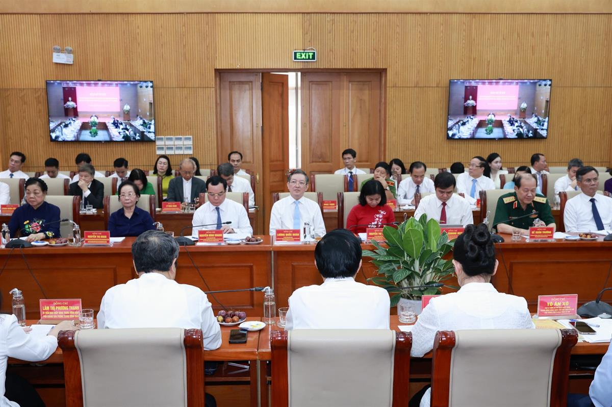 Tham dự cuộc làm việc có các đồng chí Ủy viên Bộ Chính trị, Bí thư Trung ương Đảng: Nguyễn Trọng Nghĩa, Trưởng Ban Tuyên giáo và Dân vận Trung ương; Đỗ Văn Chiến, Bí thư Đảng ủy MTTQ, các đoàn thể Trung ương, Chủ tịch Ủy ban Trung ương MTTQ Việt Nam.
