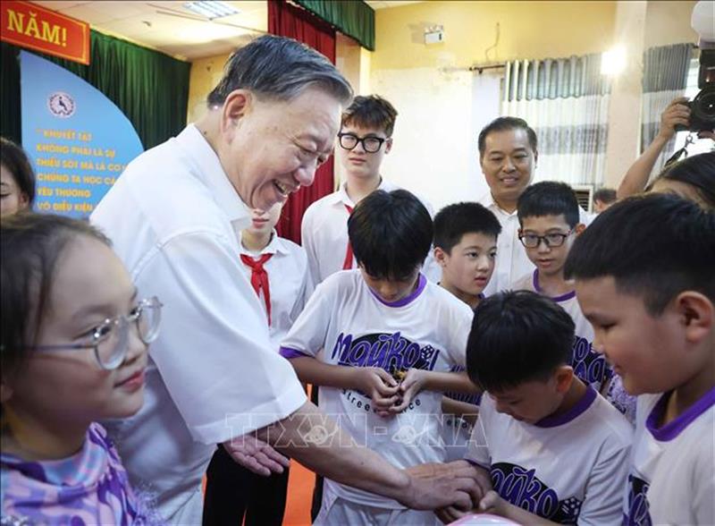 Sáng 1/6/2025, tại Hà Nội, Tổng Bí thư Tô Lâm đến thăm và tặng quà học sinh Trường PTCS Nguyễn Đình Chiểu và Trường PTCS Xã Đàn nhân dịp Ngày Quốc tế Thiếu nhi 1/6.