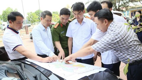 Đồng chí Nguyễn Mạnh Hùng, Phó Bí thư Tỉnh ủy, Chủ tịch UBND tỉnh kiểm tra công tác chuẩn bị phương án bố trí nơi đặt trụ sở đơn vị hành chính tại xã Hồng Vũ.