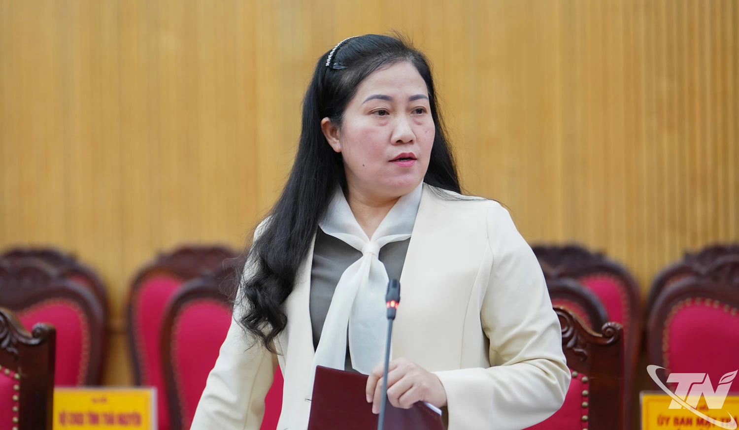 | Đồng chí Phó Chủ tịch UBND tỉnh Nguyễn Thị Loan giải trình làm rõ một số nội dung trong Báo cáo tổng kết nhiệm vụ chính trị năm 2025 và phương hướng, nhiệm vụ năm 2026. |