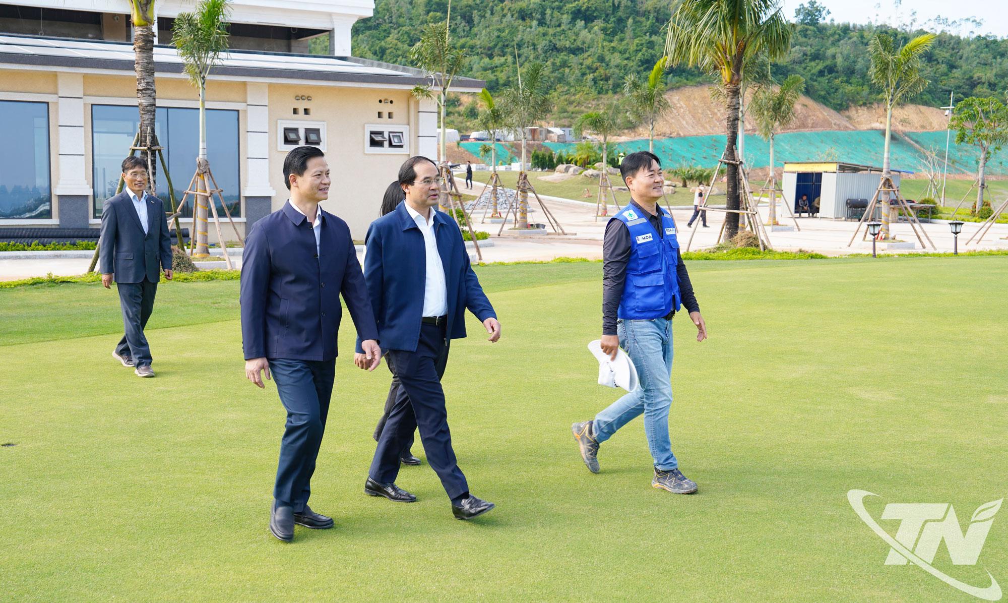 | Đồng chí Bí thư Tỉnh ủy Trịnh Xuân Trường và đồng chí Chủ tịch UBND tỉnh Vương Quốc Tuấn kiểm tra Dự án Sân golf Glory. |