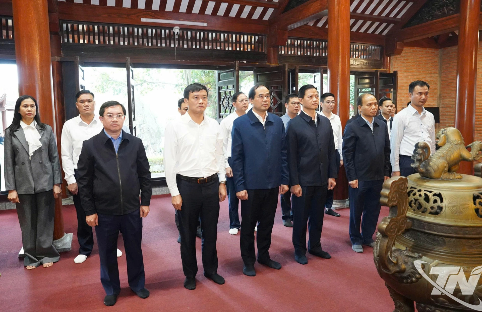 Trước đó, Đoàn công tác đã dâng hương tưởng niệm Chủ tịch Hồ Chí Minh và các Anh hùng liệt sĩ tại Khu di tích lịch sử Quốc gia 27-7 ở xóm Bàn Cờ, xã Đại Phúc.