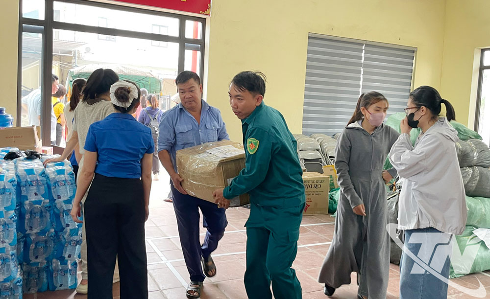 | Xã Điềm Thụy huy động nhu yếu phẩm để cấp phát cho nhân dân vùng ảnh hưởng mưa lũ. |