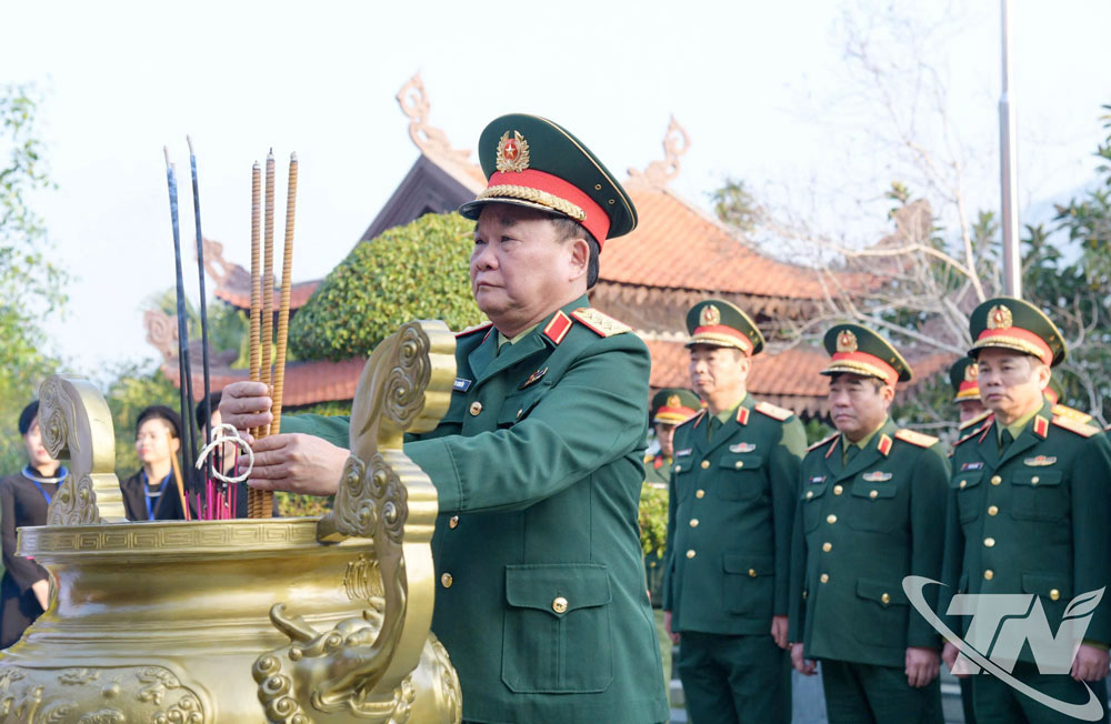 Tiếp đó, Đoàn đến dâng hương tưởng niệm Đại tướng Võ Nguyên Giáp tại Di tích lịch sử đồi Pụ Đồn (còn gọi là đồi Phong Tướng), xã Phú Đình. Nơi đây, năm 1948, Chủ tịch Hồ Chí Minh đã chủ trì Lễ phong quân hàm Đại tướng, Tổng chỉ huy Quân đội quốc gia và Dân quân tự vệ cho đồng chí Võ Nguyên Giáp.