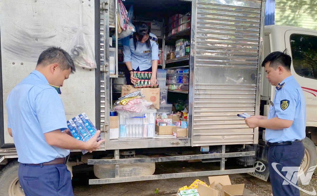 | Đội Quản lý thị trường số 9 Thái Nguyên kịp thời chặn phương tiện vận chuyển hơn 5.000 sản phẩm giả mạo nhãn hiệu. Ảnh T.L |