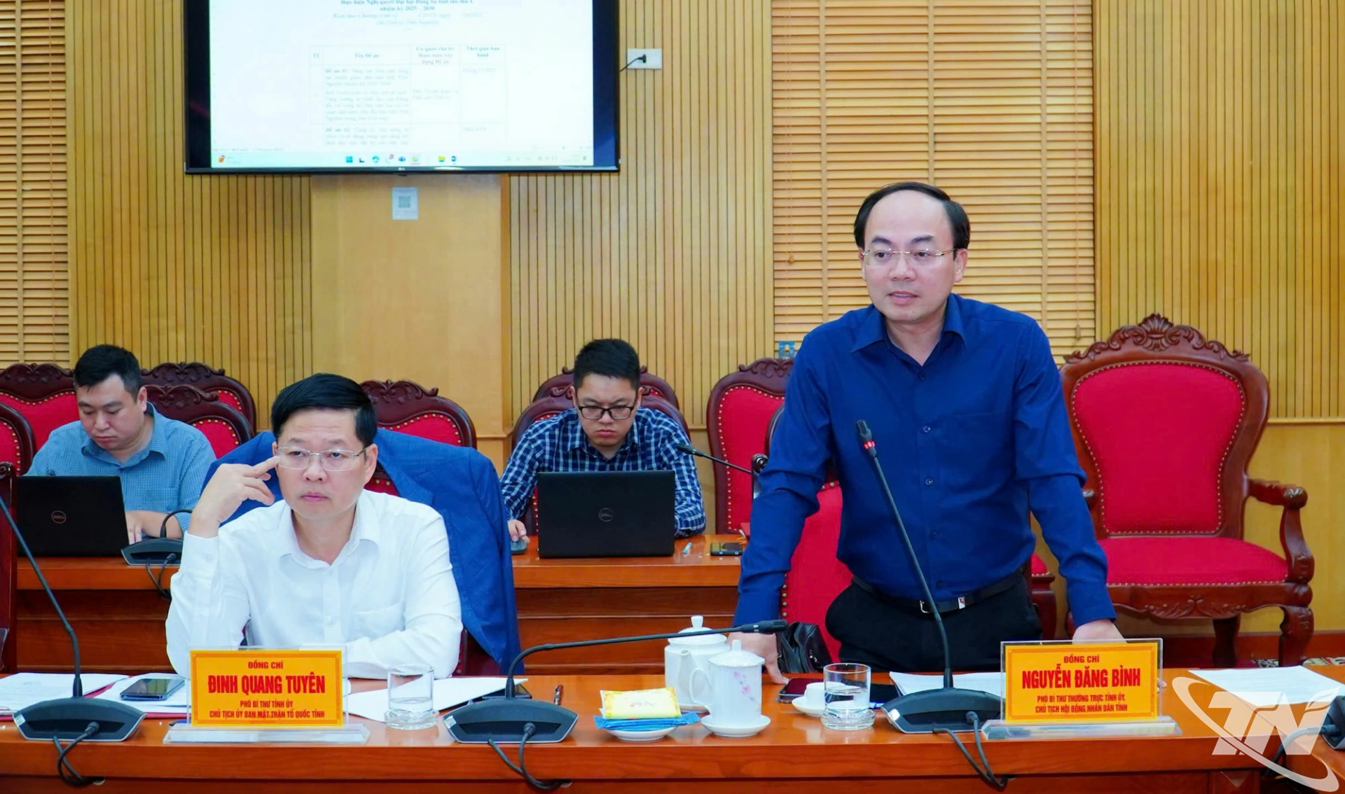 Đồng chí Bí thư Tỉnh ủy yêu cầu Đảng ủy Các cơ quan Đảng tỉnh, HĐND, UBND tỉnh và các đảng ủy trực thuộc chủ động rà soát, ban hành hệ thống cơ chế, chính sách đồng bộ nhằm huy động hiệu quả các nguồn lực cho tăng trưởng. Đẩy mạnh phân cấp, phân quyền cho cấp xã, tạo điều kiện để cơ sở chủ động, linh hoạt triển khai và cụ thể hóa các mục tiêu, nhiệm vụ của từng đề án, góp phần hoàn thành chỉ tiêu chung của tỉnh.