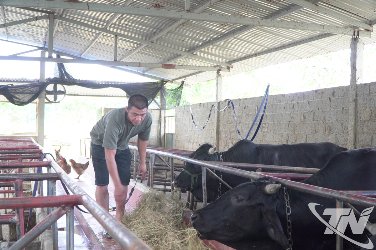 | Anh Lý Văn Toàn ở tổ 7, phường Gia Sàng, chăm sóc những con bò còn sót lại của gia đình sau mưa lũ. |