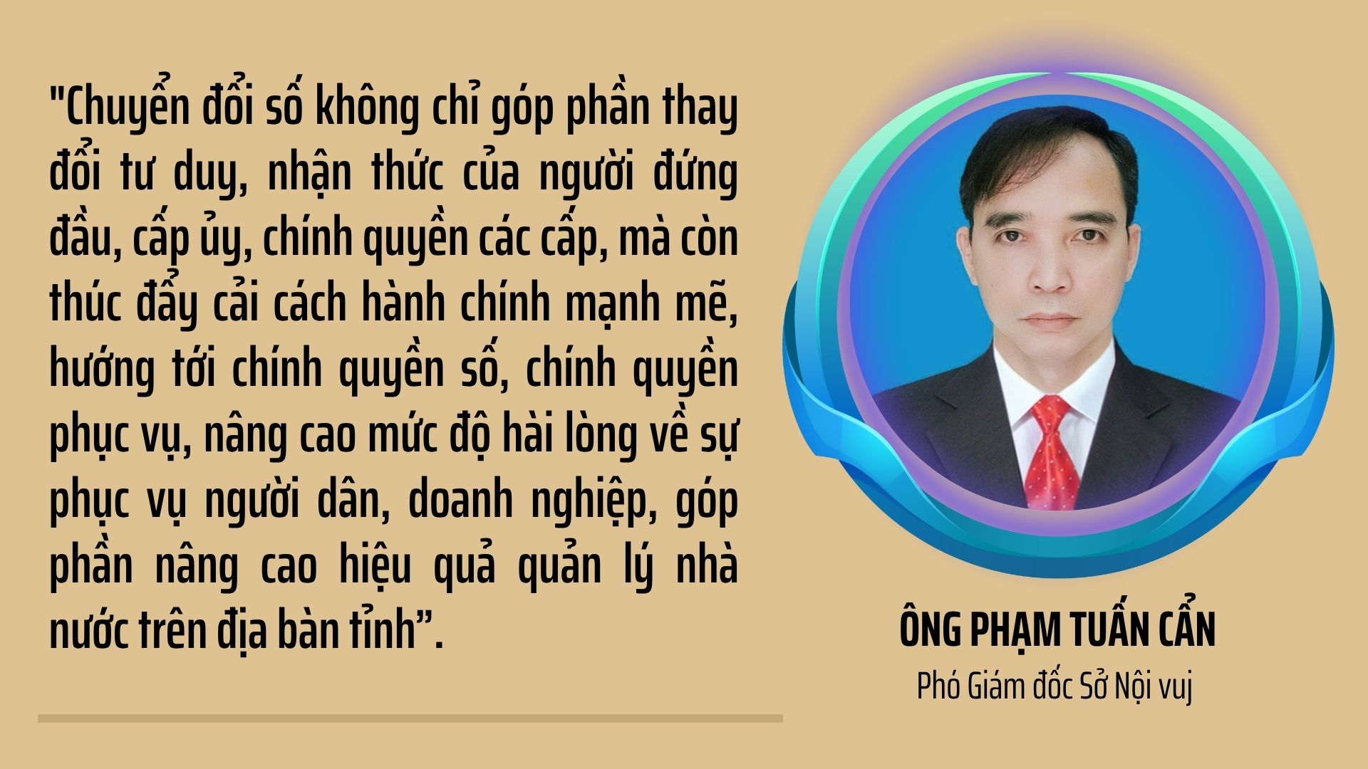 Ông Đào Ngọc Tuất, Phó Giám đốc Sở Khoa học và Công nghệ: Từ năm 2021 đến nay, tỉnh đã ban hành nhiều văn bản chỉ đạo, điều hành liên quan đến chuyển đổi số. UBND tỉnh thường xuyên tổ chức các hội nghị chuyên đề, giao ban, tập huấn để thống nhất nhận thức và hành động trong toàn hệ thống chính trị; tổ chức hàng trăm lớp tập huấn chuyển đổi số cho cán bộ, công chức, viên chức, doanh nghiệp và người dân.