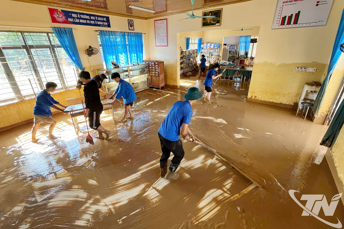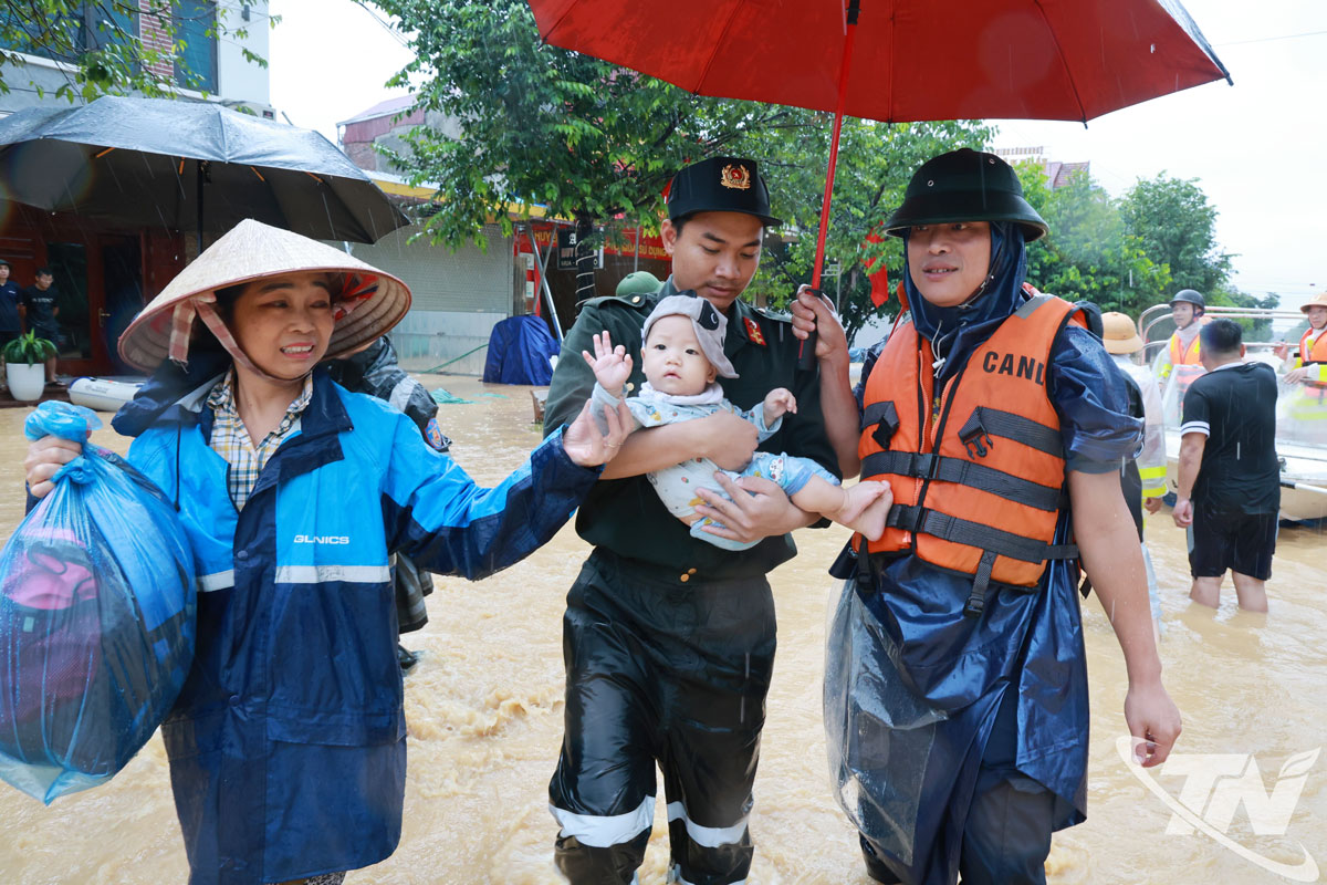 Các đơn vị quân đội cũng khẩn trương triển khai lực lượng đến nhiều địa điểm, đặc biệt là những nơi xung yếu nhất, để phối hợp hộ đê, ứng phó mưa lũ, khắc phục hậu quả thiên tai, cứu nạn, cứu hộ, đảm bảo an toàn cho người dân. Ngay khi nước rút tại khu vực trung tâm tỉnh, ngày 9-10, hơn 500 cán bộ, chiến sĩ của Trung đoàn 209, Sư đoàn 312 (đóng quân tại Sông Công, tỉnh Thái Nguyên) và hơn 100 cán bộ, chiến sĩ của Lữ đoàn 210 (Quân khu 1) đã tham gia vệ sinh môi trường, giúp đỡ, hỗ trợ người dân khắc phục hậu quả.