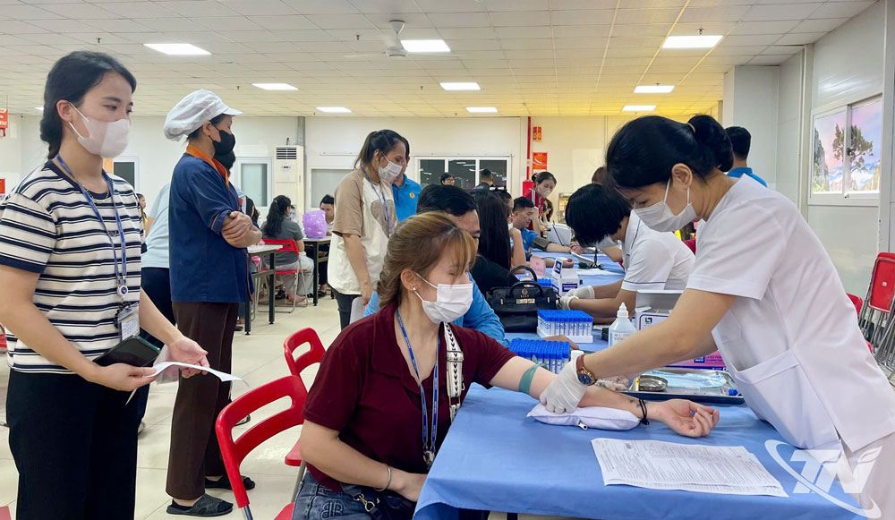 | Ngày hội hiến máu tình nguyện “Giọt hồng công nhân lao động” tại Công ty TNHH You Sung Vina, Khu công nghiệp Điềm Thụy. |