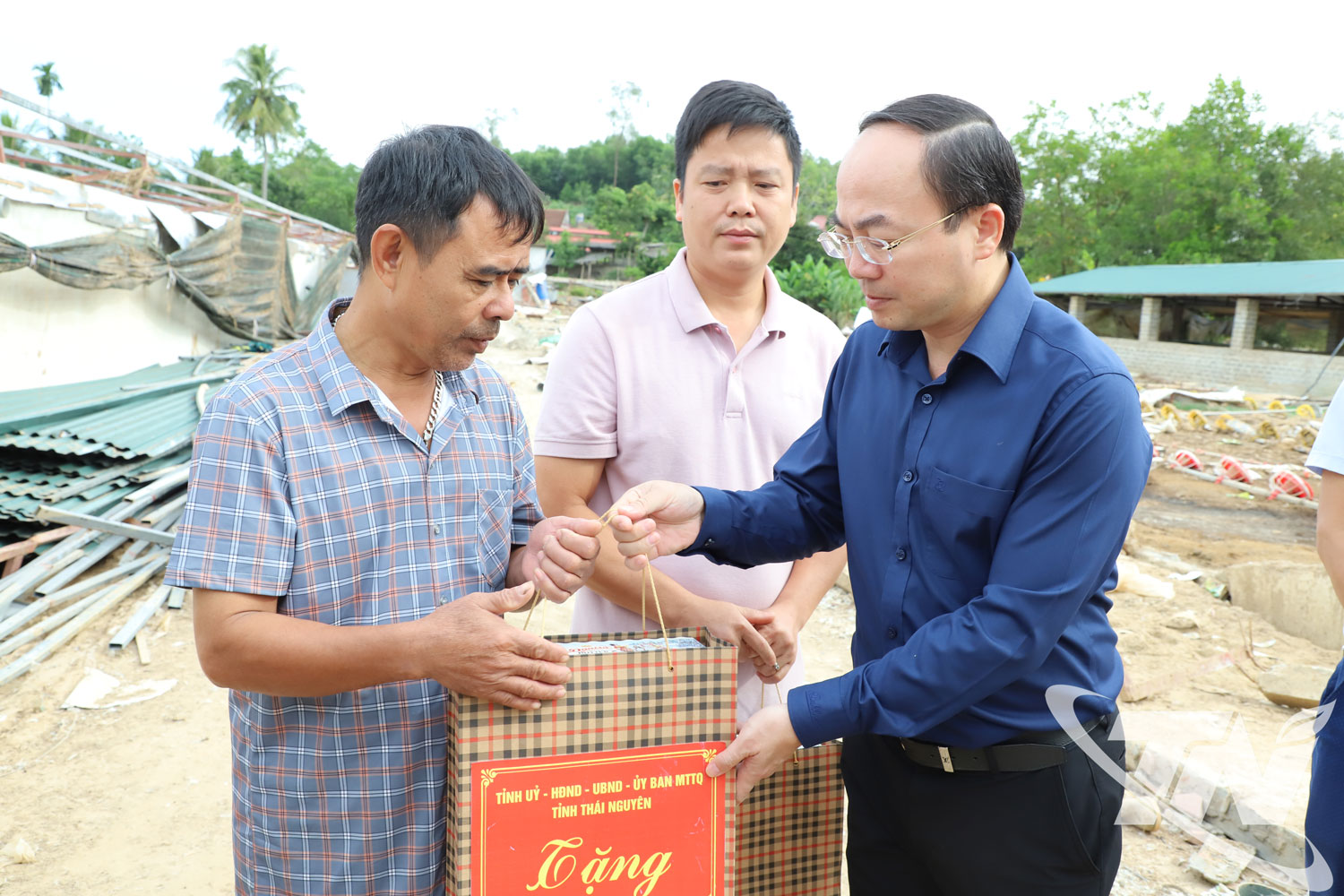 Tại xã Trại Cau, đồng chí Nguyễn Đăng Bình khảo sát Mỏ đất Đồn Trình, hiện đã cơ bản đủ điều kiện pháp lý để khai thác, và điểm sạt lở trên Quốc lộ 17; đến thăm, tặng quà cho cô và trò Trường Mầm non Trại Cau bị thiệt hại nặng trong cơn bão số 11 vừa qua.