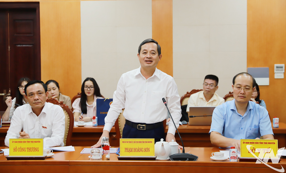 | Đồng chí Chủ tịch UBND tỉnh Phạm Hoàng Sơn phát biểu tại buổi làm việc. |