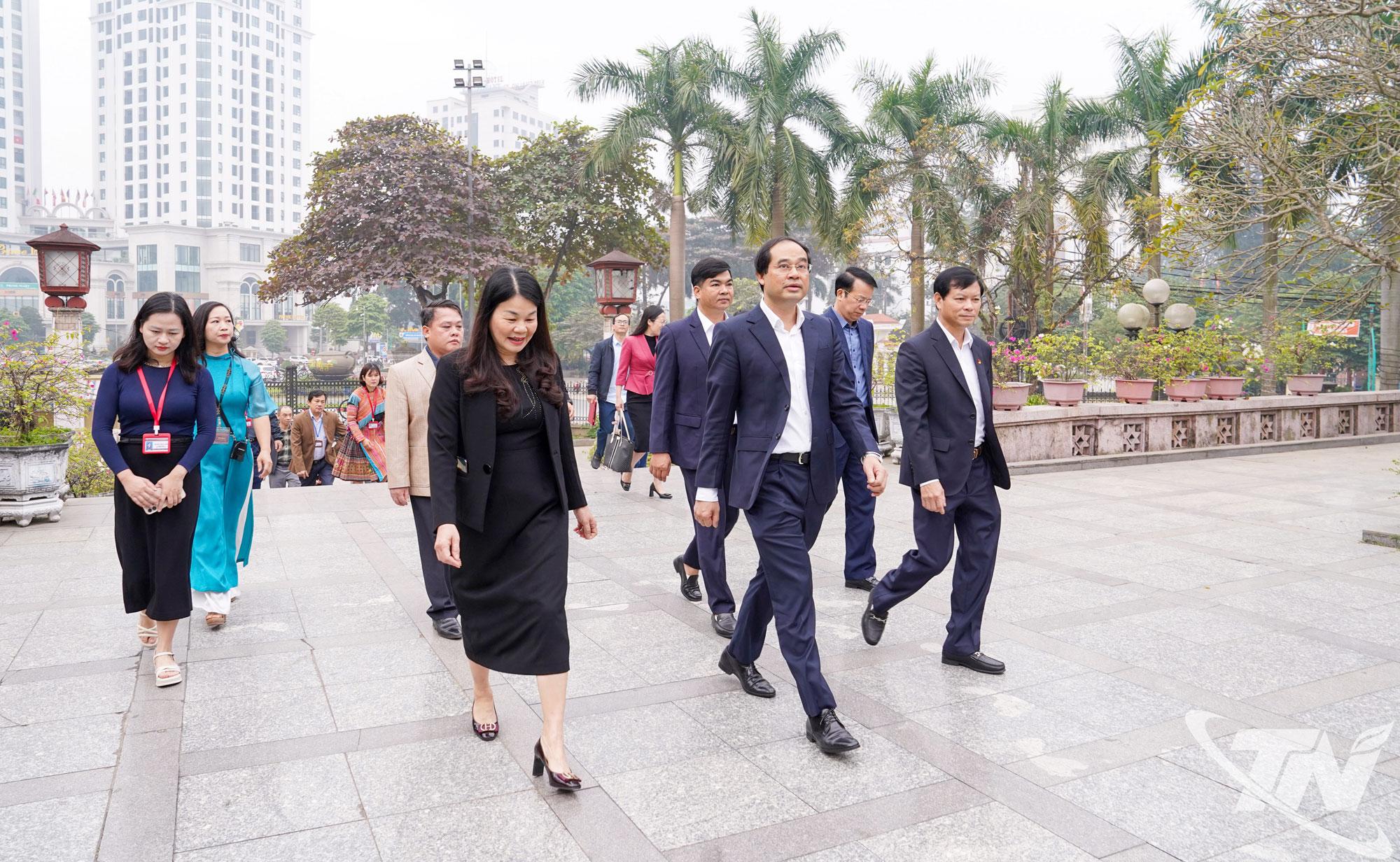 | Đồng chí Bí thư Tỉnh ủy Trịnh Xuân Trường và Đoàn công tác của tỉnh tham quan khuôn viên Bảo tàng Văn hóa các dân tộc Việt Nam. |
