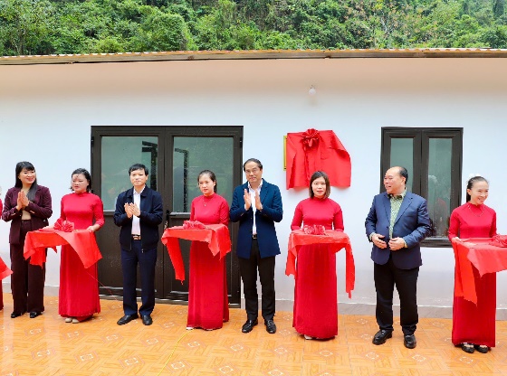 Đồng chí Bí thư Tỉnh ủy và các đại biểu chứng kiến bàn giao Nhà đại đoàn kết cho người dân