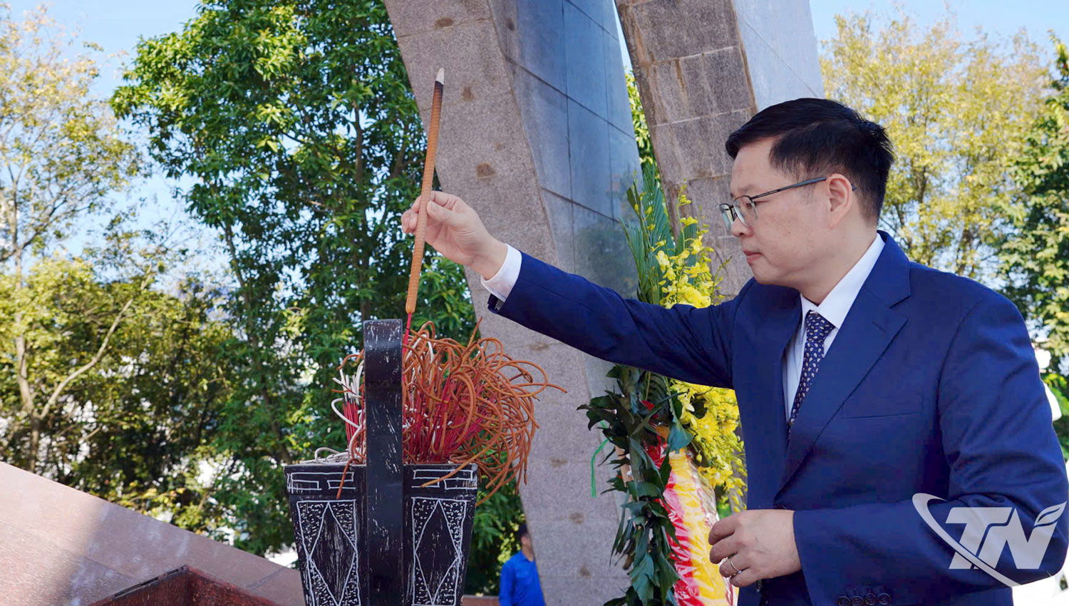 | Đoàn đại biểu dâng hương tại Đài tưởng niệm các Anh hùng liệt sĩ tỉnh Thái Nguyên và Đền thờ Đội Cấn. |
