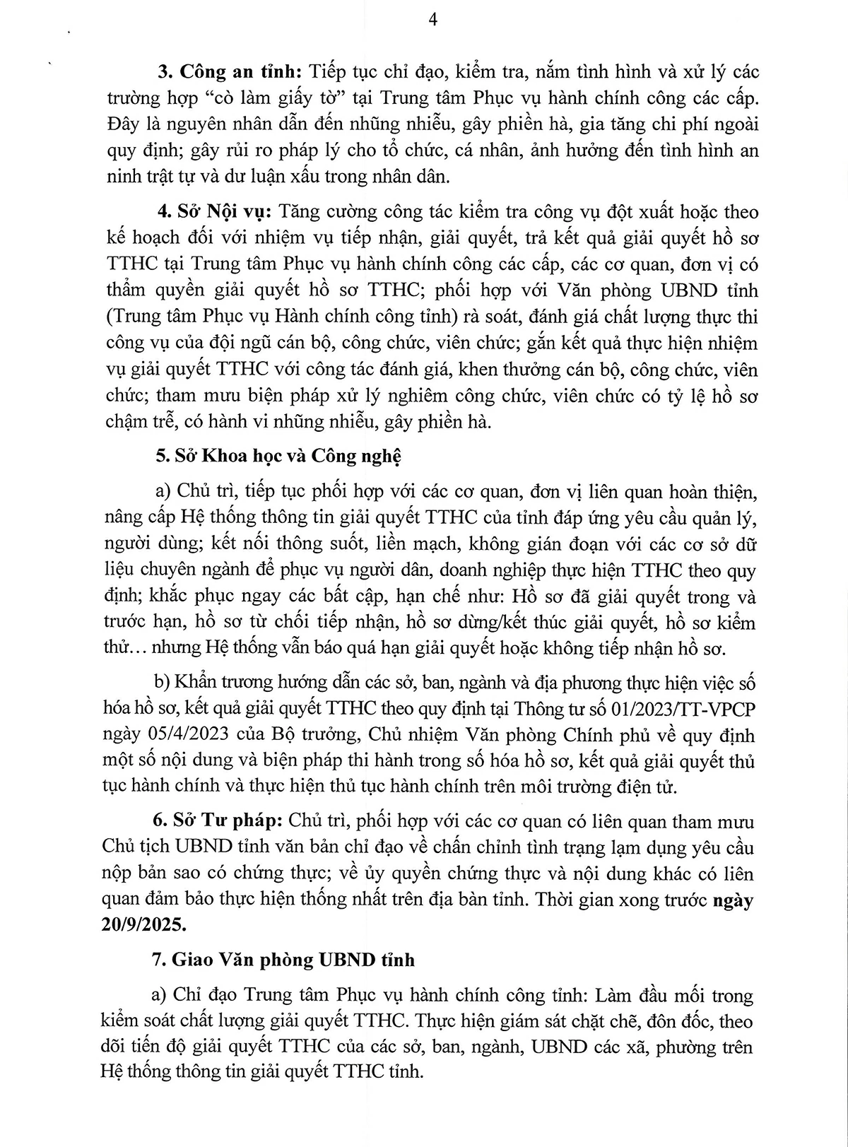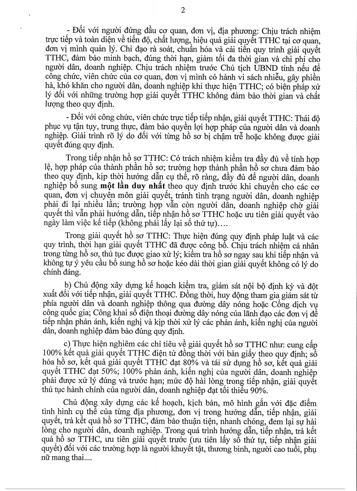 Thời gian qua, việc vận hành Trung tâm Phục vụ hành chính công các cấp trên địa bàn tỉnh Thái Nguyên đã đạt nhiều kết quả quan trọng, góp phần nâng cao hiệu quả hoạt động của chính quyền hai cấp, phục vụ người dân và doanh nghiệp ngày càng tốt hơn. Để tiếp tục phát huy kết quả đạt được, thực hiện mục tiêu “lấy sự hài lòng của người dân, doanh nghiệp làm thước đo”, Chủ tịch UBND tỉnh Thái Nguyên ban hành văn bản chỉ đạo các sở, ban, ngành, UBND các xã, phường triển khai đồng bộ các nhiệm vụ, giải pháp. Dưới đây là toàn văn văn bản.