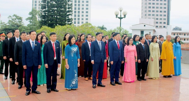 Trước đó, sáng cùng ngày, Đoàn đại biểu tham dự Đại hội do đồng chí Đinh Quang Tuyên, Phó Bí thư Tỉnh ủy, Chủ tịch Ủy ban MTTQ tỉnh làm Trưởng Đoàn đã dâng hoa, dâng hương và báo công tại Đài tưởng niệm các Anh hùng liệt sĩ của tỉnh