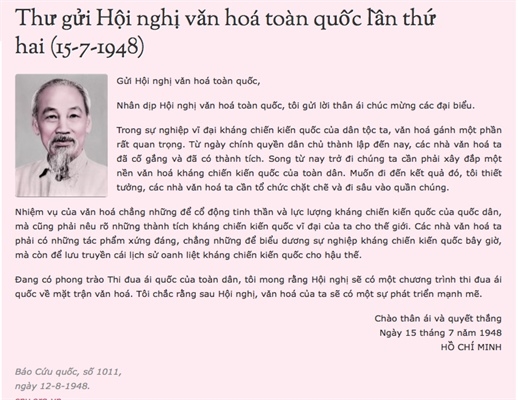 Thư của Chủ tịch Hồ Chí Minh gửi Hội nghị Văn hóa toàn quốc lần thứ hai (ngày 15/7/1948)