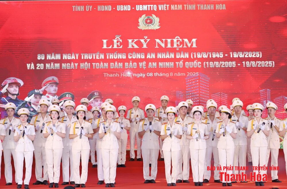 Sáng 8/8, tại trụ sở Công an tỉnh, Tỉnh ủy, HĐND, UBND, Ủy ban MTTQ tỉnh Thanh Hóa tổ chức trọng thể lễ kỷ niệm 80 năm Ngày truyền thống Công an Nhân dân Việt Nam (19/8/1945 - 19/8/2025) và 20 năm Ngày hội toàn dân bảo vệ an ninh Tổ quốc (19/8/2005 - 19/8/2025).