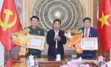 Thay mặt Ban Thường vụ Tỉnh ủy, Bí thư Tỉnh ủy Nguyễn Doãn Anh chúc mừng đồng chí Trần Văn Hòa và đồng chí Vũ Văn Tùng vừa được trao tặng huy hiệu Đảng.