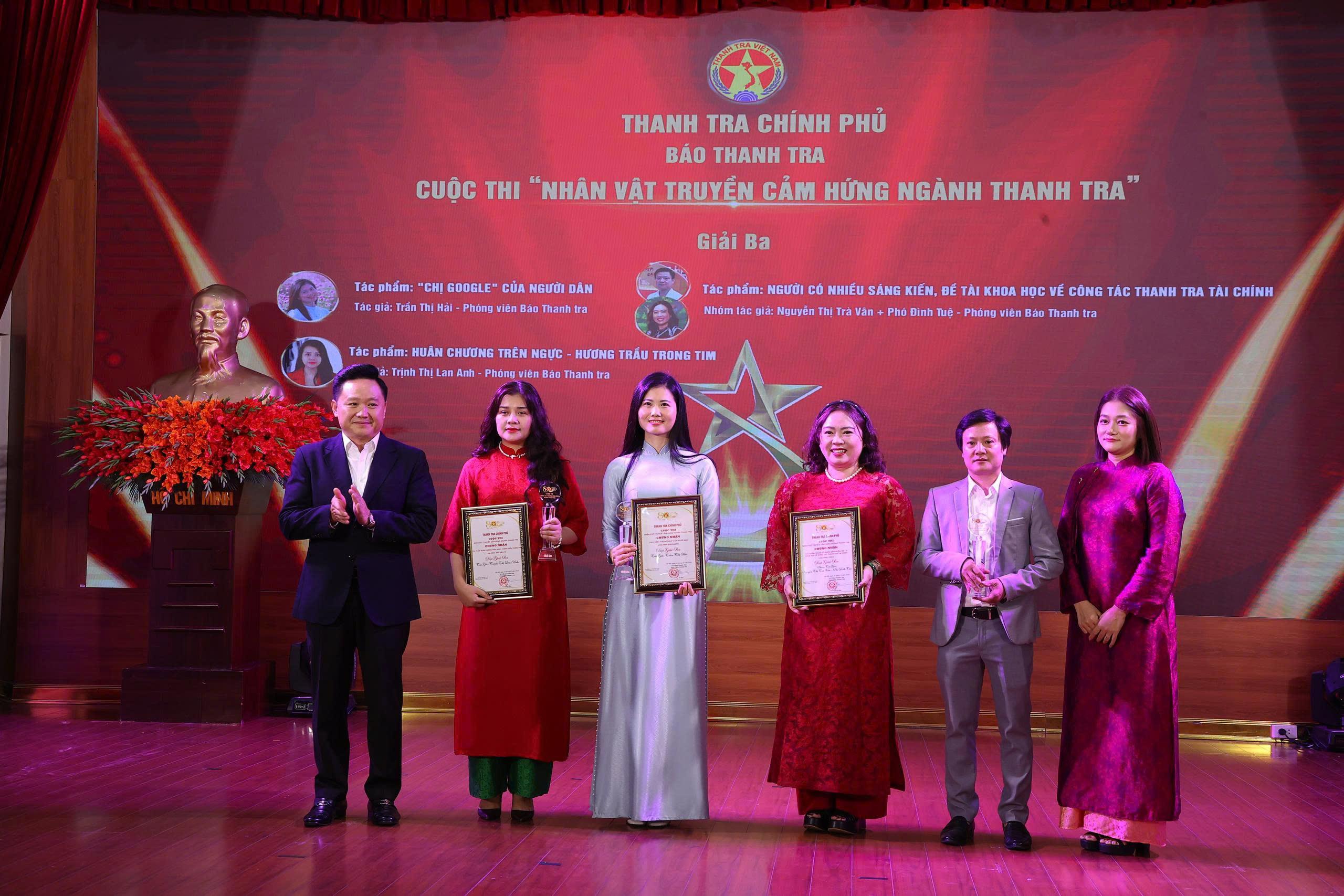 03 giải Ba lần lượt được trao cho các tác phẩm: “Chị Google” của người dân; Tác giả: Trần Thị Hải (Báo Thanh tra); Nhân vật: Bà Nguyễn Thị Thu Hiền, Ban Tiếp công dân phường Đại Mỗ (TP Hà Nội); Người có nhiều sáng kiến, đề tài khoa học về công tác thanh tra tài chính; Tác giả: Nguyễn Thị Trà Vân, Phó Đình Tuệ (Báo Thanh tra); Nhân vật: Ông Nguyễn Thanh Bình, Phó Cục trưởng Cục VI, Thanh tra Chính phủ và Huân chương trên ngực - Hương trầu trong tim; Tác giả: Trịnh Thị Lan Anh (Báo Thanh tra); Nhân vật: Ông Nguyễn Hồng Điệp, Trưởng Ban Tiếp công dân Trung ương.