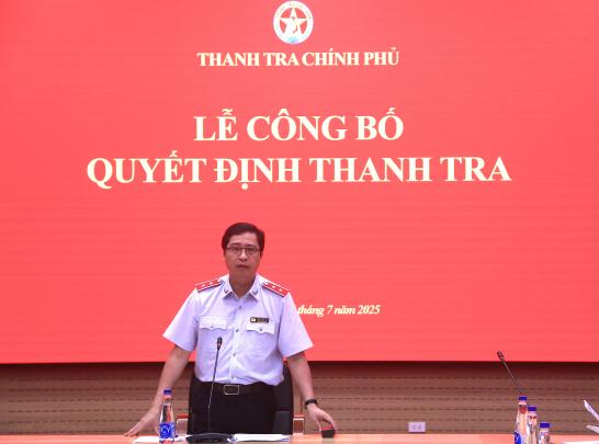 Phát biểu chỉ đạo tại buổi công bố quyết định thanh tra, Phó Tổng Thanh tra Chính phủ Dương Quốc Huy yêu cầu Đoàn thanh tra tiến hành thanh tra theo nội dung và kế hoạch đã được Tổng Thanh tra Chính phủ phê duyệt.