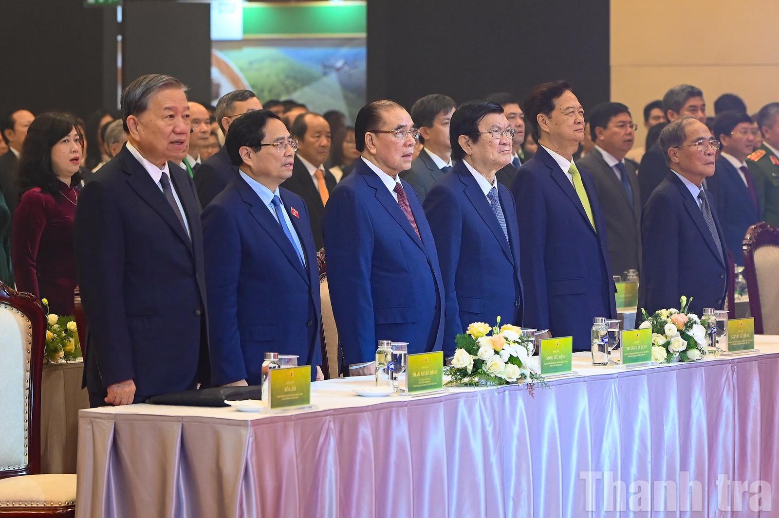 Cùng dự có nguyên Tổng Bí thư Nông Đức Mạnh; nguyên Chủ tịch nước Trương Tấn Sang; Thủ tướng Phạm Minh Chính, nguyên Thủ tướng Nguyễn Tấn Dũng; các nguyên Chủ tịch Quốc hội Nguyễn Sinh Hùng, Nguyễn Thị Kim Ngân, các Ủy viên Bộ Chính trị, Bí thư Trung ương Đảng, Ủy viên Trung ương Đảng và hơn 1.200 đại biểu đại diện các ban, bộ, ngành Trung ương, địa phương, các tổ chức quốc tế, doanh nghiệp, hiệp hội, cùng các thế hệ cán bộ, công chức, viên chức, người lao động của ngành Nông nghiệp và Môi trường.