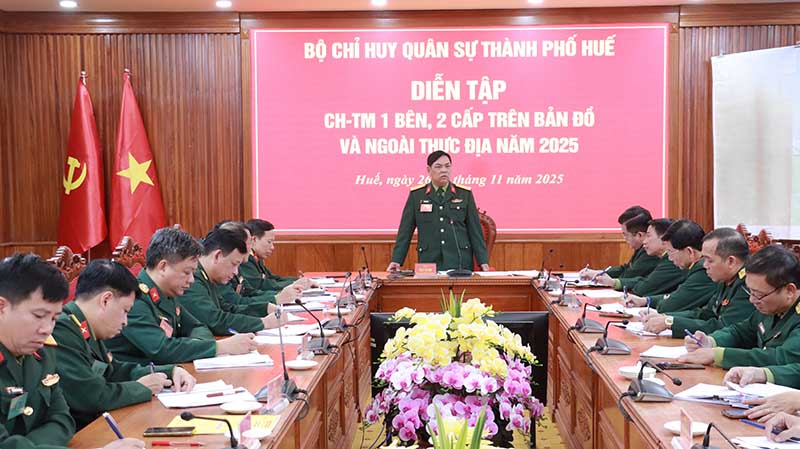 Cuộc diễn tập CH-TM 1 bên, 2 cấp Bộ CHQS thành phố Huế đã hoàn thành, đạt được mục đích, yêu cầu đề ra, bảo đảm an toàn về mọi mặt.