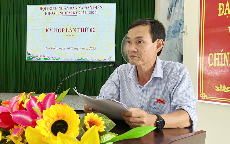 Ngày 30/7, Hội đồng nhân dân xã Đan Điền tổ chức kỳ họp lần thứ 2, khóa I, nhiệm kỳ 2021 – 2026. Đây là kỳ họp quan trọng nhằm đánh giá kết quả phát triển kinh tế - xã hội 6 tháng đầu năm, thảo luận và đề ra nhiệm vụ, giải pháp thực hiện trong 6 tháng cuối năm 2025. Đồng chí Lê Ngọc Đức – Bí thư Đảng uỷ, Chủ tịch HĐND xã và đồng chí Phạm Lượng – UVTV, Phó Chủ tịch HĐND xã chủ toạ kỳ họp.