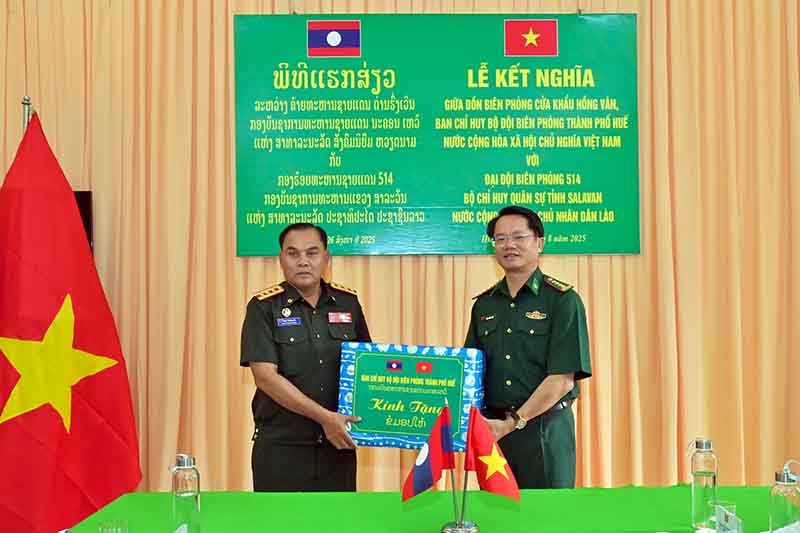 Ngày 26/8, tại xã A Lưới 1, TP Huế đã diễn ra Lễ ký kết Quy chế kết nghĩa giữa Đồn Biên phòng cửa khẩu Hồng Vân, Bộ đội Biên phòng TP Huế (Việt Nam) và Đại đội Biên phòng 514, Bộ Chỉ huy Quân sự tỉnh Salavan (nước Cộng hòa Dân chủ Nhân dân Lào).