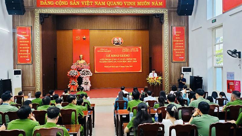 Buổi lễ khai giảng diễn ra trong không khí trang trọng, nghiêm túc, thể hiện sự quan tâm sâu sắc của các cấp lãnh đạo đối với công tác giáo dục lý luận chính trị cho lực lượng Công an.