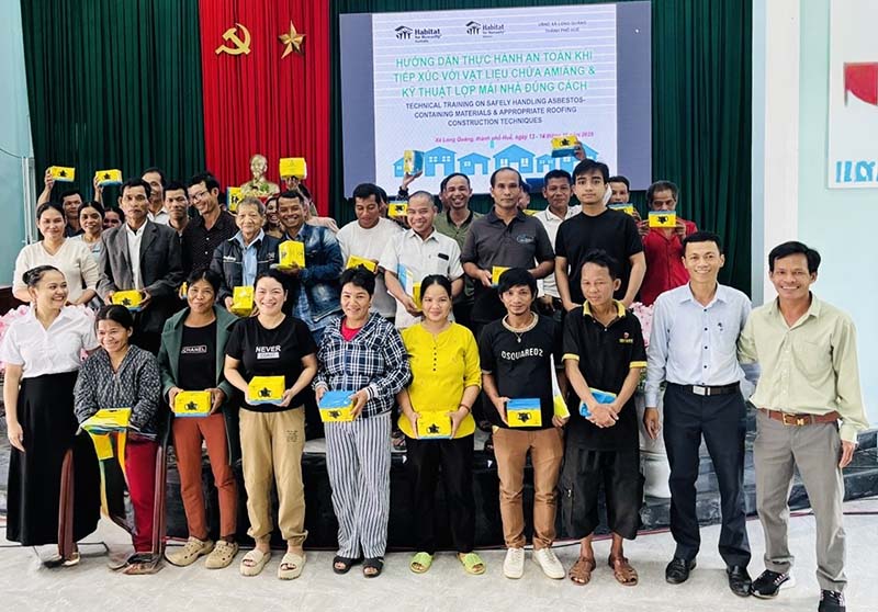 Tại đợt tập huấn, bà con nhân dân đã được Habitat trang bị khẩu trang chống độc khi tháo gỡ, xử lý tấm lợp fibro ximăng có nghi ngờ chứa Amiăng. Sau khi được tập huấn, dự kiến cuối tháng 11 đầu tháng 12 năm 2025 Habitat và UBND xã Long Quảng sẽ tiến hành cấp phát tôn kẽm cho 120 hộ gia đình được Habitat lựa chọn để thay thế tấm lợp, góp phần ổn định đời sống của bà con nhân dân.