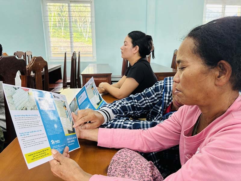 Xã miền núi Long Quảng có trên 85% dân số là đồng bào dân tộc thiểu số Cơtu; đời sống nhân dân còn nhiều khó khăn, vì thế phần lớn hộ dân trên địa bàn xã lợp nhà bằng tấm lợp fibro ximăng (tấm lợp nghi ngờ có chứa Amiăng). Để giúp nâng cao nhận thức của cộng đồng về tác hại của vật liệu chứa Amiăng, tại các lớp tập huấn cán bộ kỹ thuật của Habitat tại miền Trung đã cung cấp những thông tin quan trọng về nguy cơ sức khỏe khi tiếp xúc trực tiếp hoặc gián tiếp với bụi Amiăng và các loại vật liệu nghi ngờ có chứa Amiăng. Đồng thời, hướng dẫn kỹ thuật tháo gỡ, quản lý tấm lợp fibro ximăng an toàn, tránh gây ô nhiễm môi trường và ảnh hưởng đến cộng đồng… trong quá trình học tập, bà con đã cùng thảo luận, trao đổi và chia sẻ những vấn đề còn vướng mắc về cách nhận biết các loại vật liệu có chứa Amiăng thường gặp tại các hộ gia đình và được cán bộ kỹ thuật giải đáp cụ thể.