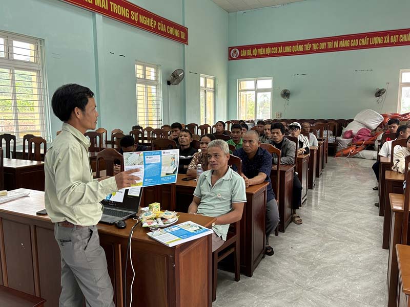 Vừa qua, tổ chức Habitat for Humanity International tại Việt Nam (HFHI-V) phối hợp UBND xã Long Quảng tổ chức 3 lớp tập huấn về an toàn khi tiếp xúc với vật liệu nghi ngờ có chứa Amiăng và kỹ thuật lợp mái nhà đúng cách cho gần 160 người dân tại địa phương.