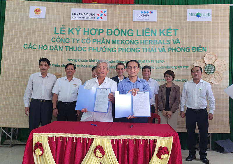 Mới đây, trong khuôn khổ dự án hỗ trợ kỹ thuật “Thúc đẩy nông nghiệp thông minh với khí hậu và tài chính toàn diện tại Việt Nam để cải thiện khả năng thích ứng, chống chịu và phục hồi trước tác động của biến đổi khí hậu cho các nông hộ, đặc biệt là phụ nữ” (dự án VIE/039) do Chính phủ Luxembourg tài trợ tại TP. Huế, Chính phủ Luxembourg đã phê duyệt và ký thỏa thuận đồng tài trợ với Công ty CP Mekong Herbals. Theo đó, Công ty CP Mekong Herbals và các HTX trên địa bàn 2 phường Phong Thái và Phong Điền đã ký kết hợp tác sản xuất và tiêu thụ sản phẩm hoa atiso đỏ theo tiêu chuẩn hữu cơ. Mục tiêu của hoạt động nhằm phát triển chuỗi giá trị hoa atiso hữu cơ và vùng nguyên liệu 60 ha, thời gian thực hiện từ tháng 4/2025-12/2026.