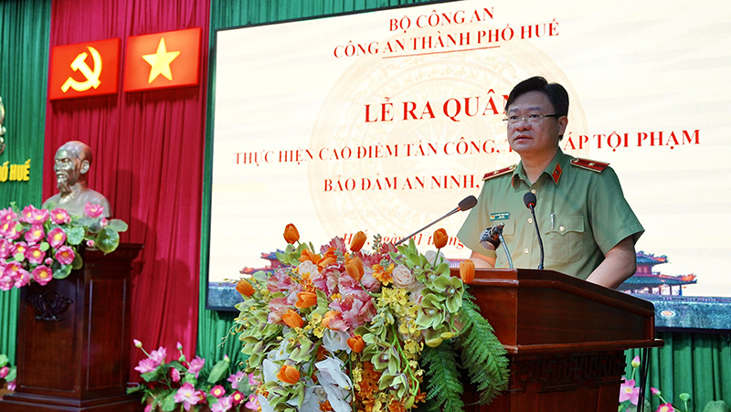 Ngày 1/8, Công an thành phố Huế tổ chức ra quân cao điểm tấn công, trấn áp tội phạm, đảm bảo an ninh trật tự bảo vệ tuyệt đối an ninh, an toàn các ngày lễ lớn và Đại hội Đảng các cấp, tiến tới Đại hội Đảng toàn quốc lần thứ XIV. Đồng chí Thiếu tướng Nguyễn Thanh Tuấn- UVBTV Thành ủy, Giám đốc Công an thành phố chủ trì buổi lễ.