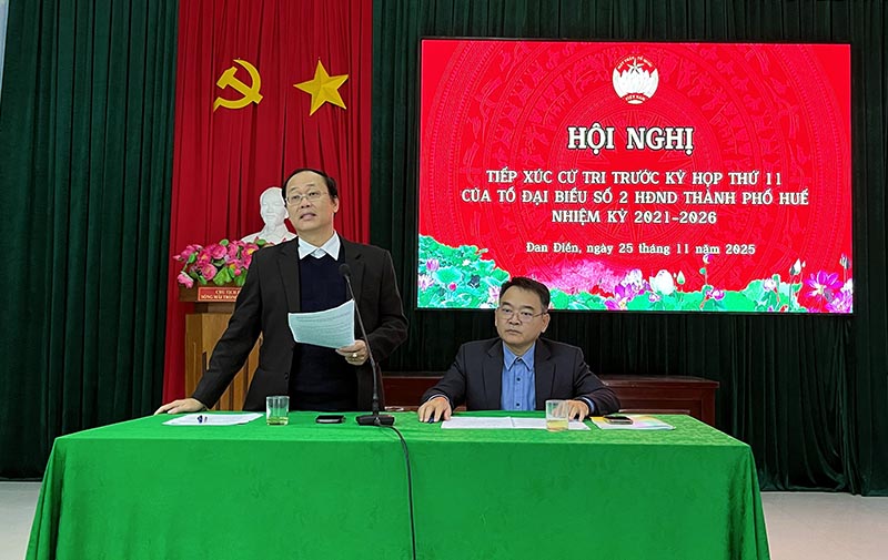 Ngày 25/11, Tổ đại biểu số 2 HĐND Thành phố Huế gồm có ông Hoàng Đăng Khoa - TUV, Tổng Biên tập Báo và Phát thanh Truyền hình Huế; ông Trần Quốc Thắng - TUV, Chánh Văn phòng Thành ủy Huế đã có buổi tiếp xúc cử tri tại xã Đan Điền nhằm chuẩn bị cho kỳ họp thứ 11, HĐND thành phố khóa VIII. Tham dự có đồng chí Lê Ngọc Đức - Bí thư Đảng ủy, Chủ tịch HĐND xã cùng các đồng chí trong Ban Thường vụ Đảng ủy, Thường trực HĐND, UBND, UBMTTQVN xã và đông đảo cử tri trên địa bàn xã tham dự.