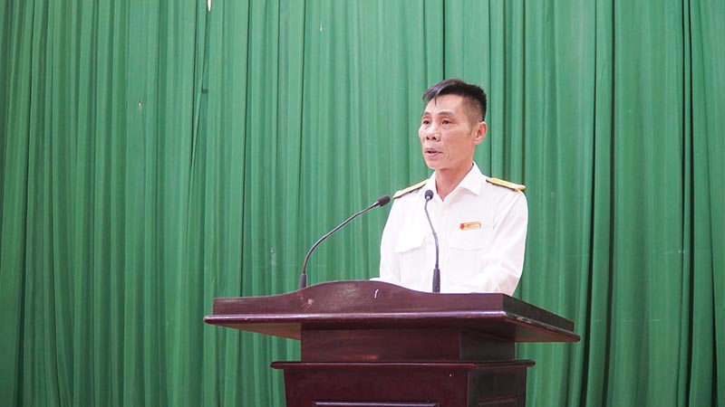 Ông Huỳnh Diên Đức, Phó Trưởng Thuế cơ sở 2 thành phố Huế tuyên truyền chuyển đổi mô hình và phương pháp quản lý thuế từ khoán sang kê khai
