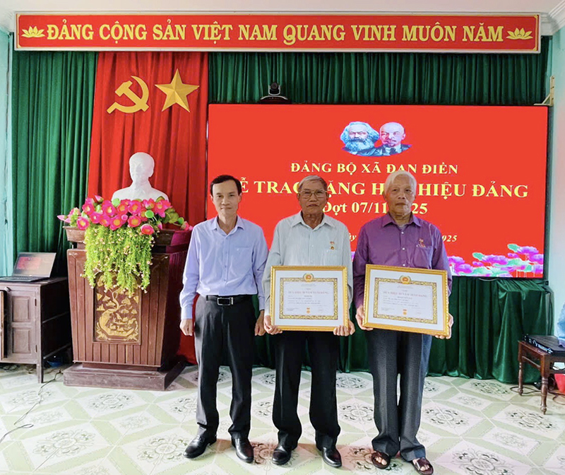 Tại buổi Lễ, thay mặt Ban Thường vụ Đảng ủy, đồng chí Nguyễn Đình Khánh - Ủy viên Ban Thường vụ Đảng ủy, Trưởng Ban Xây dựng Đảng đã thông qua Quyết định số 40-QĐ/TU, ngày 29/10/2025 của Ban Thường vụ Thành ủy về tặng Huy hiệu Đảng đợt 07/11/2025 cho 09 đảng viên thuộc Đảng bộ xã Đan Điền. Theo đó: Tặng Huy hiệu Đảng 60 năm cho 02 đảng viên; tặng Huy hiệu Đảng 50 năm cho 02 đảng viên, tặng Huy hiệu Đảng 45 năm cho 02 đảng viên, tặng Huy hiệu Đảng 40 năm cho 02 đảng viên và tặng Huy hiệu Đảng 30 năm cho 03 đảng viên.