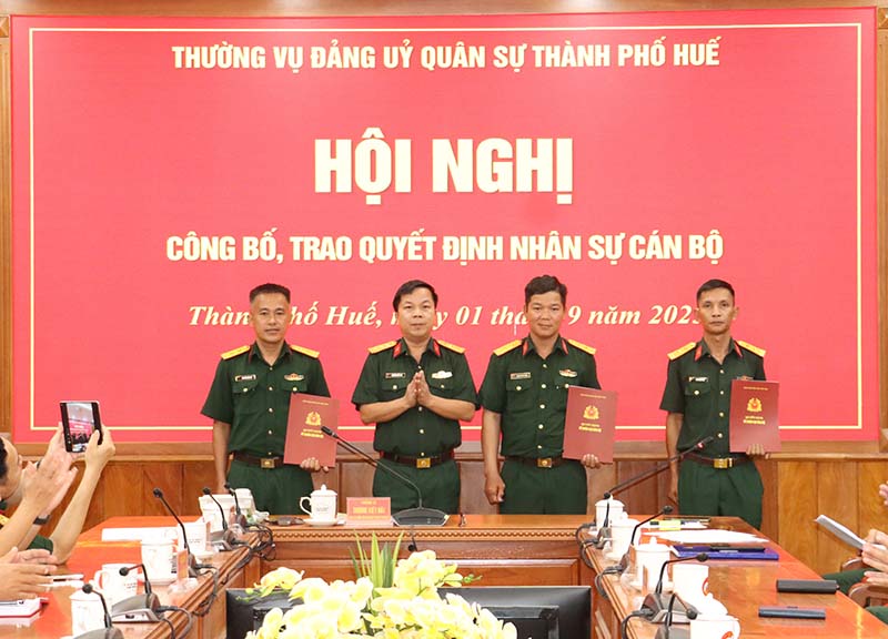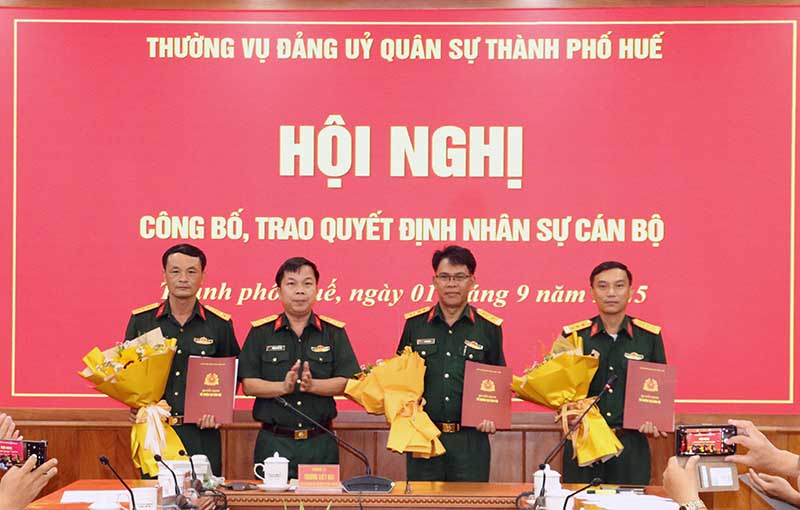 Thừa ủy quyền của Bộ quốc phòng, Bộ Tư lệnh quân khu 4. Ngày 01/9 Thường vụ Đảng ủy quân sự thành phố đã tổ chức trao quyết định nhân sự cán bộ năm 2025. Thượng tá Trương Viết Hải - Phó bí thư Thường trực Đảng ủy, Chính ủy Bộ CHQS thành phố chủ trì hội nghị.