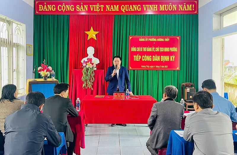 Ngày 04/12, tại Nhà sinh hoạt cộng đồng Tổ dân phố Lợi Nông, phường Hương Thủy, đồng chí Ngô Văn Vinh - Bí thư Đảng ủy, Chủ tịch HĐND phường đã có buổi tiếp công dân định kỳ. Tham dự buổi tiếp công dân còn có đồng chí Trương Công Nghĩa - UVBTV Đảng ủy, Trưởng Ban Xây dựng Đảng; đồng chí Nguyễn Cửu Ngọc - UVBTV Đảng ủy, Phó Chủ tịch UBND phường cùng lãnh đạo các phòng, ban chuyên môn.
