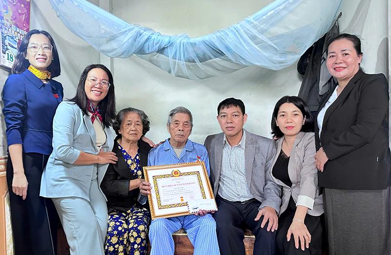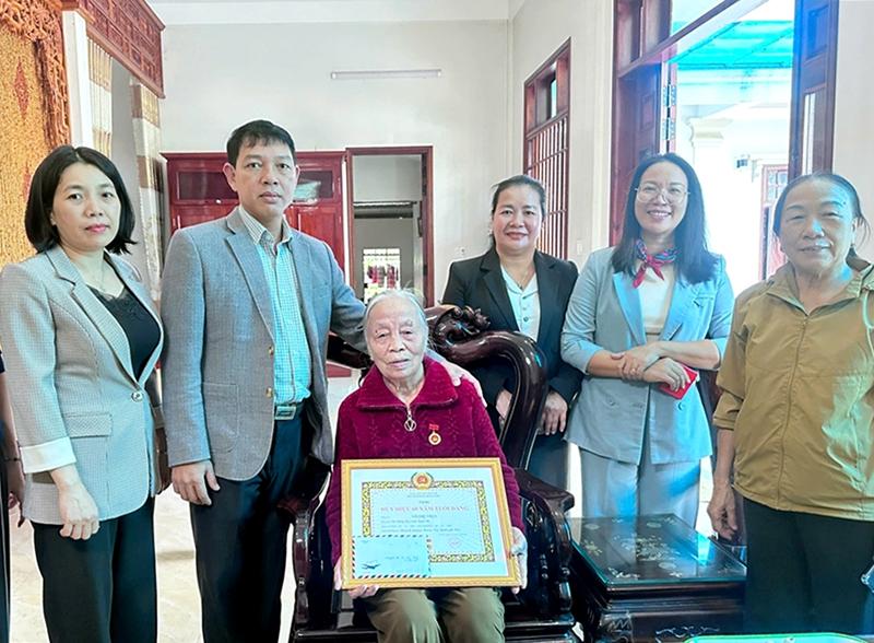 Lãnh đạo phường trao Huy hiệu 60 năm tuổi Đảng cho đảng viên Võ Thị Thủy ở tại nhà riêng ở Tổ dân phố 8, phường Hương Trà