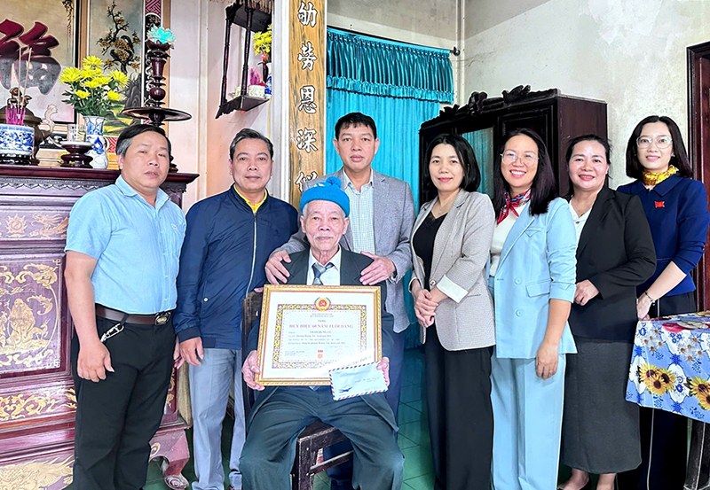 Do ảnh hưởng của thời tiết mưa lũ, Ban Thường vụ Đảng ủy phường Hương Trà tổ chức trao Huy hiệu Đảng tại nhà riêng nhằm đảm bảo an toàn và thể hiện sự quan tâm, trân trọng của Đảng đối với các đảng viên lão thành.