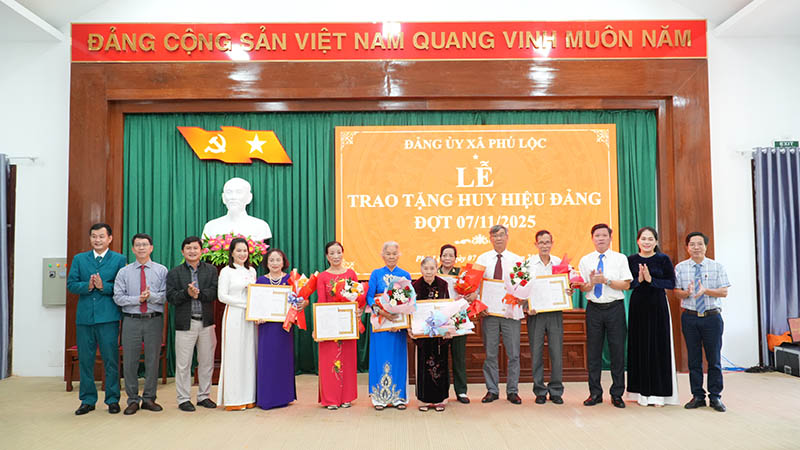 Ngày 7/11, Đảng ủy xã Phú Lộc trang trọng tổ chức Lễ trao tặng Huy hiệu Đảng chào mừng kỷ niệm 108 năm Cách mạng Tháng Mười Nga (7/11/1917 – 7/11/2025). Tham dự có đồng chí Lê Văn Thông – Bí thư Đảng ủy, Chủ tịch HĐND xã; đồng chí Cái Diệu Trang, Phó Bí thư Thường trực Đảng ủy; đồng chí Nguyễn Văn Hiệp, Phó Bí thư Đảng ủy, Chủ tịch UBND xã.