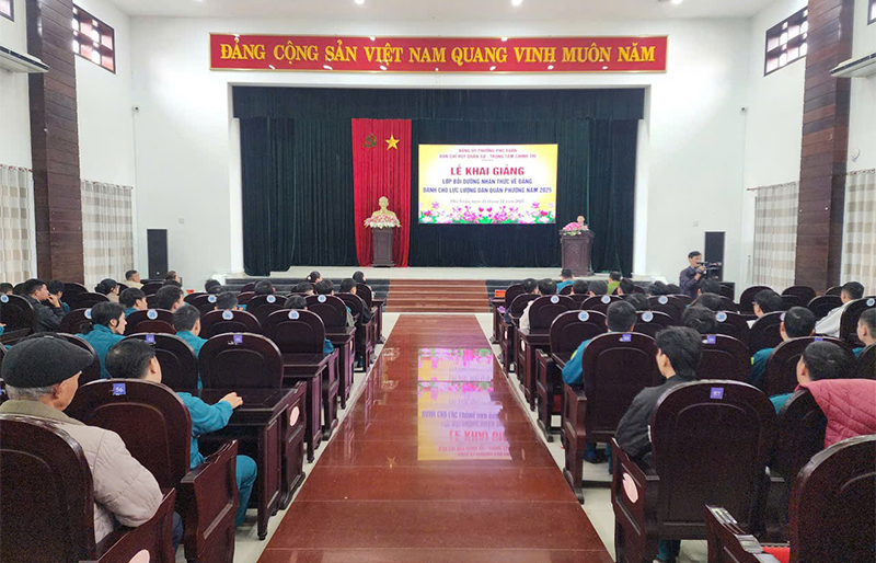 Chiều 15/12, Ban chỉ huy quân sự Phường Phú Xuân phối hợp Trung tâm Bồi dưỡng chính trị phường tổ chức khai mạc lớp bồi dưỡng nhận thức về Đảng dành cho lực lượng dân quân tự vệ năm 2025. Đây là lớp thứ hai được mở trong năm, với sự tham gia của 135 đồng chí dân quân tự vệ trên địa bàn phường.