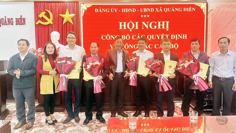 Ngày 04/12, Đảng ủy - HĐND - UBND xã Quảngh Điền đã tổ chức hội nghị công bố các Quyết định về công tác cán bộ. Tham dự hội nghị có đồng chí Lê Văn Khuyến - Phó Bí thư Thường trực Đảng ủy xã; đồng chí Nguyễn Ánh Cầu - Phó Bí thư Đảng ủy, Chủ tịch UBND xã; đồng chí Hoàng Công Phong - UVTV, Phó Chủ tịch HĐND xã cùng các đồng chí trong Ban Thường vụ Đảng ủy xã; đại diện lãnh đạo Ban Xây dựng Đảng, Ủy ban Kiểm tra, Văn phòng Đảng ủy và các cơ quan, đơn vị có cán bộ được điều động, bổ nhiệm.