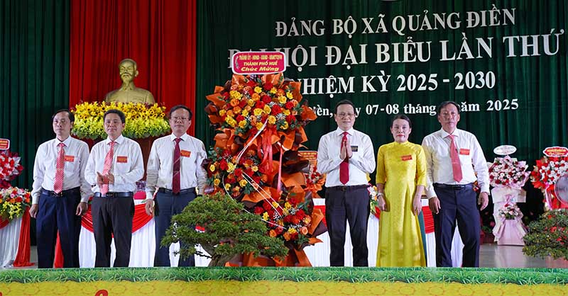 Sáng 8/8, Đảng bộ xã Quảng Điền tổ chức phiên chính thức Đại hội đại biểu Đảng bộ lần thứ I, nhiệm kỳ 2025 – 2030. Đây là Đại hội đầu tiên sau khi xã Quảng Điền được thành lập trên cơ sở sáp nhập các đơn vị hành chính: Thị trấn Sịa, xã Quảng Thọ, Quảng Phước và Quảng An.