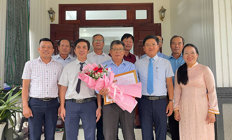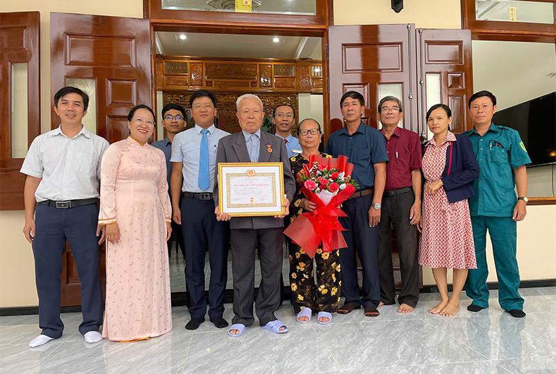 Lãnh đạo Đảng ủy trao tặng Huy hiệu 50 năm tuổi Đảng cho đảng viên Lê Quang Sanh, Chi bộ thôn Đồng Di